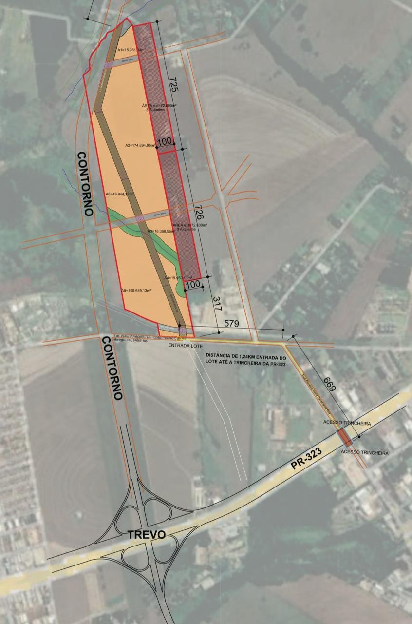 Esta área se destaca pela excelente localização estratégica no novo contorno Leste entre Maringá e Paiçandu, com 556.600 m² de área total ou 23 Alqueires, é uma opção ideal para empresas, centros de distribuição ou projetos institucionais que buscam visibilidade e fácil acesso as principais Rodovias PR-323; PR-317; BR-376